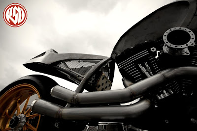 Well with all the fab work complete on Mickey's bike it is time to dismantle it and get it ready for the new finishes. One key part to the finish work on anything is the paint. So before we paint our gas tanks we send them out for sealing. We take our tanks to "Gary's Radiator" in Fullerton CA. Every time you go see Bob Hornidge who owns Gary's Radiator it is a real treat. Apparently someone told the California fish and game department about Bob's pet alligator "Reggie II". They were there thirty minutes before I arrive to drop off the tank. I was super bummed to find out Reggie II and been abducted by the government. I've watched Reggie grow up from a 6inch gator to a menacing 3ft garbage disposal. I can only hope Reggie gets the same care at his new home as he received in the radiator shop. If you ever in Fullerton do yourself a favor and stop by to see Bob, he is one of the coolest cats I know. I always describe his shop as what I picture heaven looking and feeling like. Thank God for true Americans like Bob. When people talk about someone being a one of a kind they usually exaggerate, but Bob is no exaggeration in the one of a kind dept. Tell him Rodney sent you and he might give you a Budweiser and let you feed the huge totus that roams the yard. Plus if you need a gas tank sealed or a radiator fixed there is no one better.